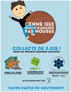 Cette initiative se veut une collecte de monnaie dans l’arrondissement Ahuntsic- Cartierville au profit d’activités jeunesse du territoire : voyage étudiant, soutien à une coopérative jeunesse de service (CJS) et autres projets aux goûts des jeunes. De la fin mai à la fin septembre 2013, vous pourrez faire don de votre monnaie et de vos sous noirs dans plusieurs points de dépôt dont :