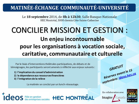 Conférence gratuite - Concilier mission et gestion: un enjeu incontournable pour les organisations à vocation sociale, caritative, communautaire et culturelle