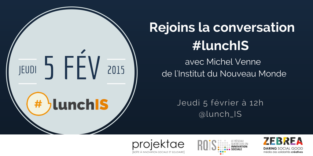 Le 5 février prochain sur l’heure du midi, rendez-vous sur Twitter pour participer à #lunchIS, une discussion engagée sur l’innovation sociale.