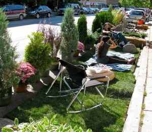 Le Park(ing) Day est un événement annuel mondial qui réunit artistes, citoyens, élus, et organisations visant à faire prendre conscience de la valeur de l’espace urbain occupé par les cases de stationnements.
